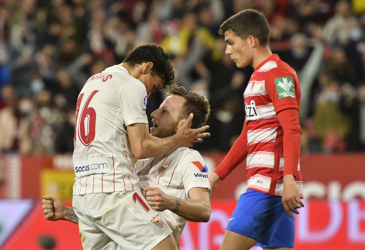 DirectoCrónicaNavas y Rakitic celebran el tercer gol del Sevilla ante el Granada.Raúl Caro (EFE)