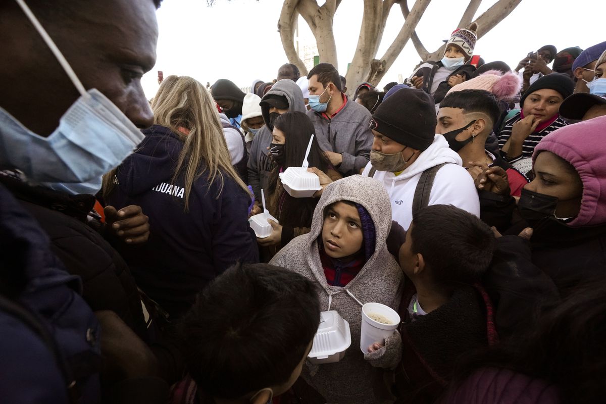 Solicitantes de asilo reciben comida en Tijuana, en febrero de este año.