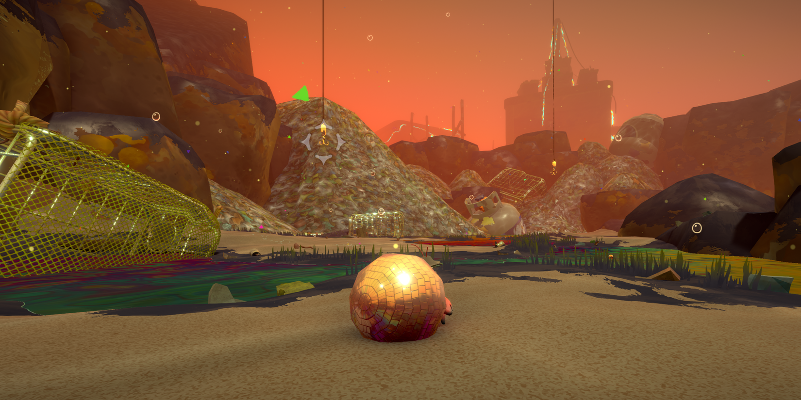 Ahora que finalmente has llegado, tendrás que afrontar el desafío de esta arena de frente. Te darás cuenta dos anzuelos colgando en el aire aquí; tenga en cuenta esos; los necesitarás más tarde. Además, observe la suciedad que cubre gran parte del piso aquí.