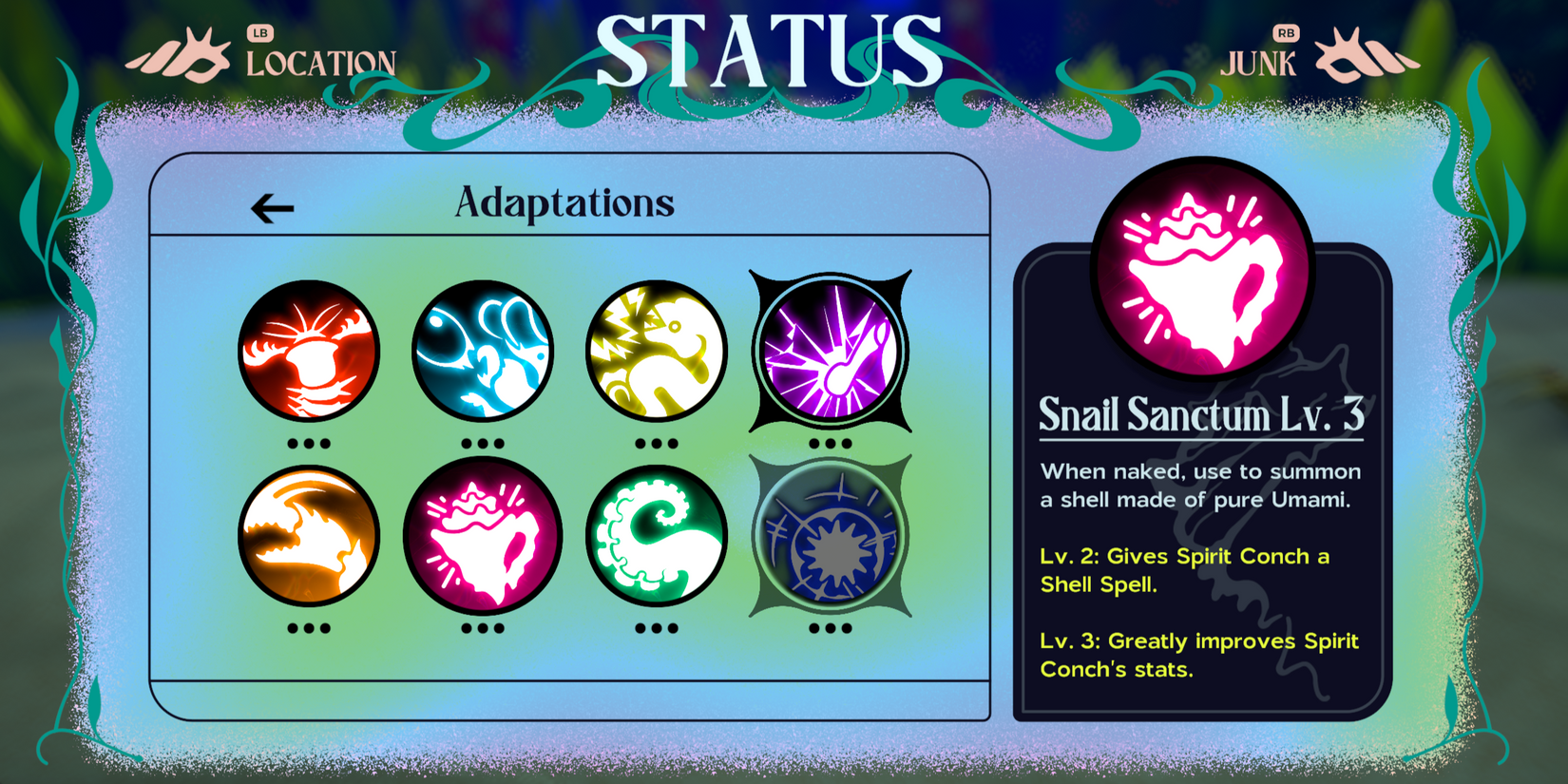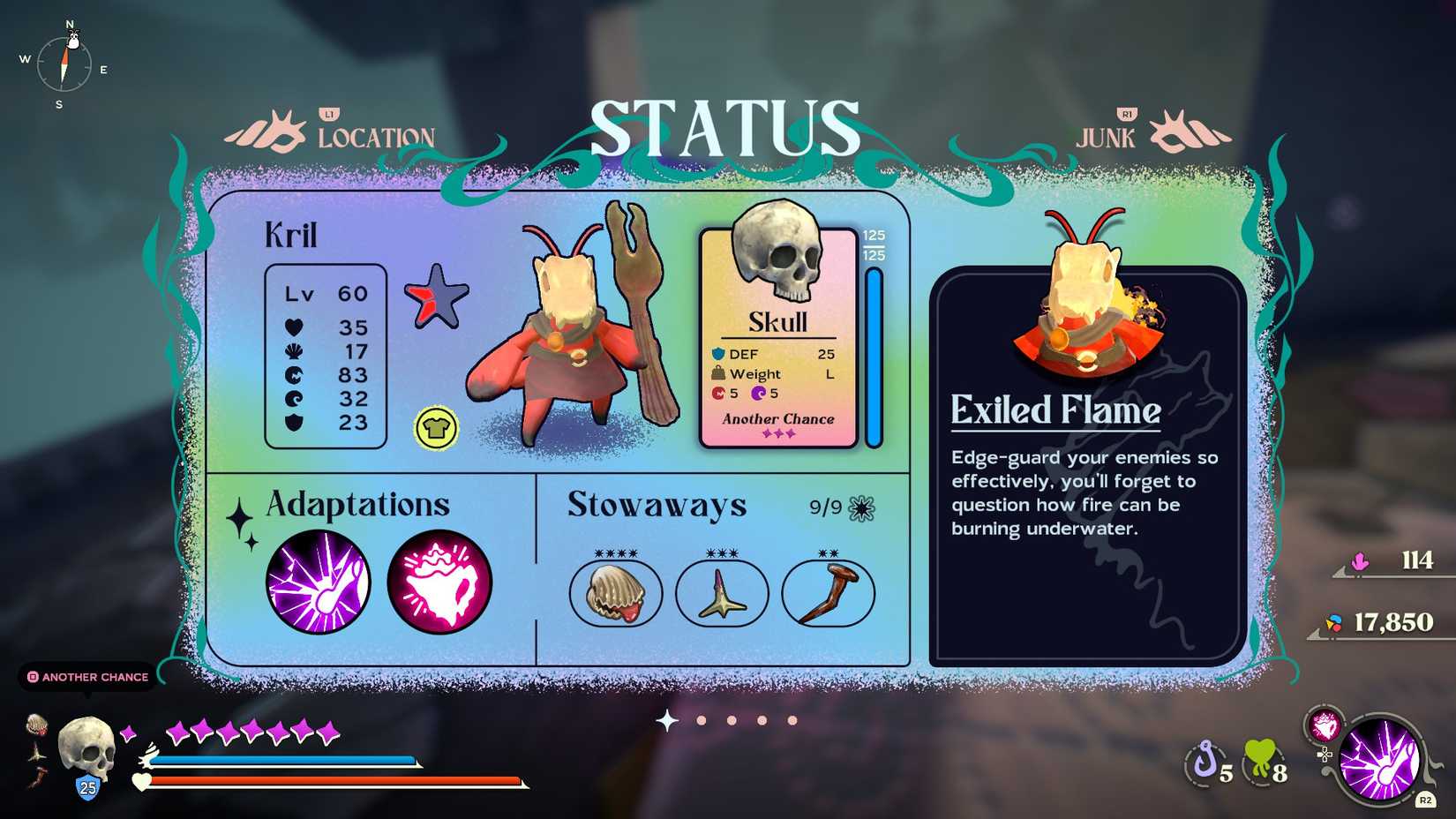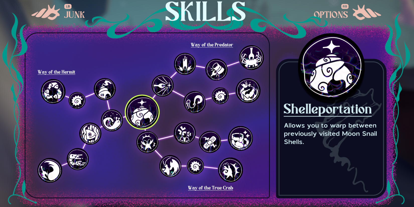 Después de un poco de progreso, Kril conocerá al Caracol Lunar, quien desbloqueará la capacidad de conquistar diferentes caminos de habilidades que cambiarán la forma en que Kril lucha. El tesoro de otro cangrejo. Hay tres caminos diferentes para elegir, cada uno con su estilo único.