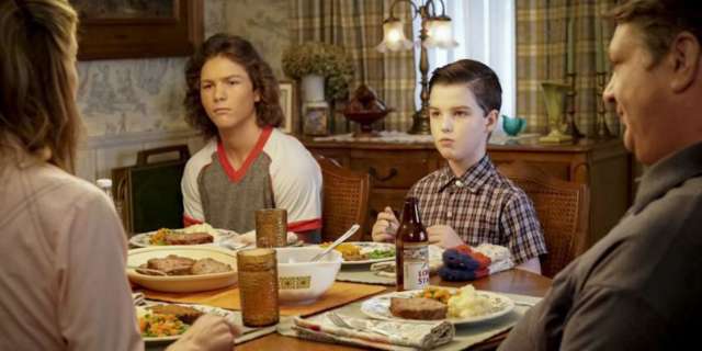 “El hermano mayor de Sheldon, Georgie, hace lo mejor que puede en la escuela secundaria, pero es difícil ser genial cuando estás en las mismas clases con tu extraño hermano menor. La hermana gemela de Sheldon, Missy, a veces se ofende por toda la atención que recibe Sheldon, pero también sigue siendo la única persona que puede decirle la verdad de manera confiable. Finalmente, está la querida Meemaw de Sheldon, su abuela de Texas malhumorada y boba que apoya mucho a su nieto y sus regalos únicos. Durante 12 años en La teoría del Big Bang, el público ha llegado a conocer al icónico, excéntrico y extraordinario Sheldon Cooper. Esta comedia de media hora con una sola cámara nos permite conocerlo en la infancia, mientras se embarca en su inocente, incómodo y esperanzador viaje hacia el hombre en el que se convertirá “.