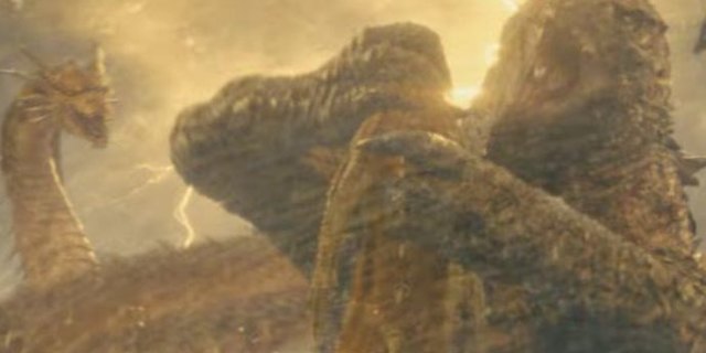 Cuando los humanos intentan escapar, Ghidorah ataca. Godzilla sale en su defensa. Ghidora abre sus alas y las dos cuadradas hacia arriba. Farmiga le dice a su familia en FaceTime que ella está salvando el mundo. Mothra vuela sobre una ciudad con sus alas creando una ráfaga de viento que arrastra a los humanos desde el suelo. El personaje de Chandler está ansioso por detener a todos los monstruos. Ghidorah, Rodan, Mothra y Godzilla luchan. Se escupen aliento atómico y relámpagos. Los edificios son destruidos ".