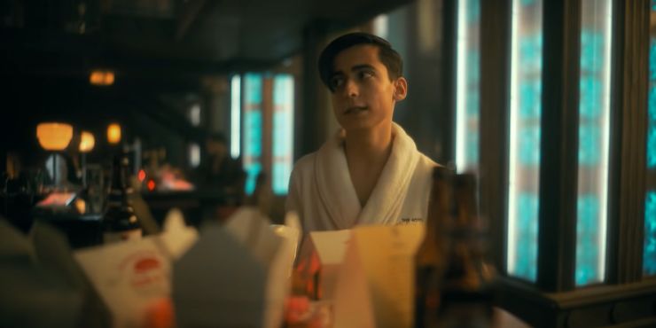 Arrojando su peso detrás de esta teoría está la bata esponjosa de Five. Durante la conversación de la cena con Luther, Klaus y Diego (la de qué hacer si se encuentran con sus yo alternativos), Five lleva una túnica adornada con el logotipo de Hotel Obsidian. Parece bastante improbable que una prisión de supervillanos ofrezca servicios de spa.