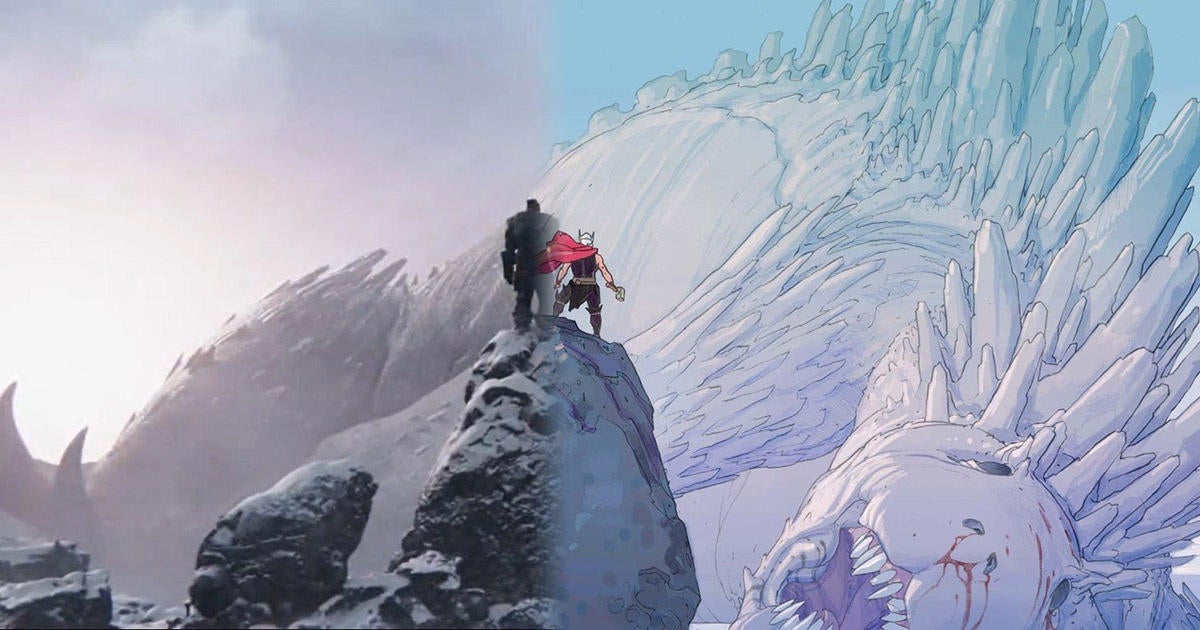 La toma se recrea con gran detalle en el Thor: amor y trueno tráiler, casi hasta el punto de que parece que insertaron el panel en la película y luego lo volvieron a colorear para que coincida amor y truenogradación de color. Compruébelo usted mismo a continuación.