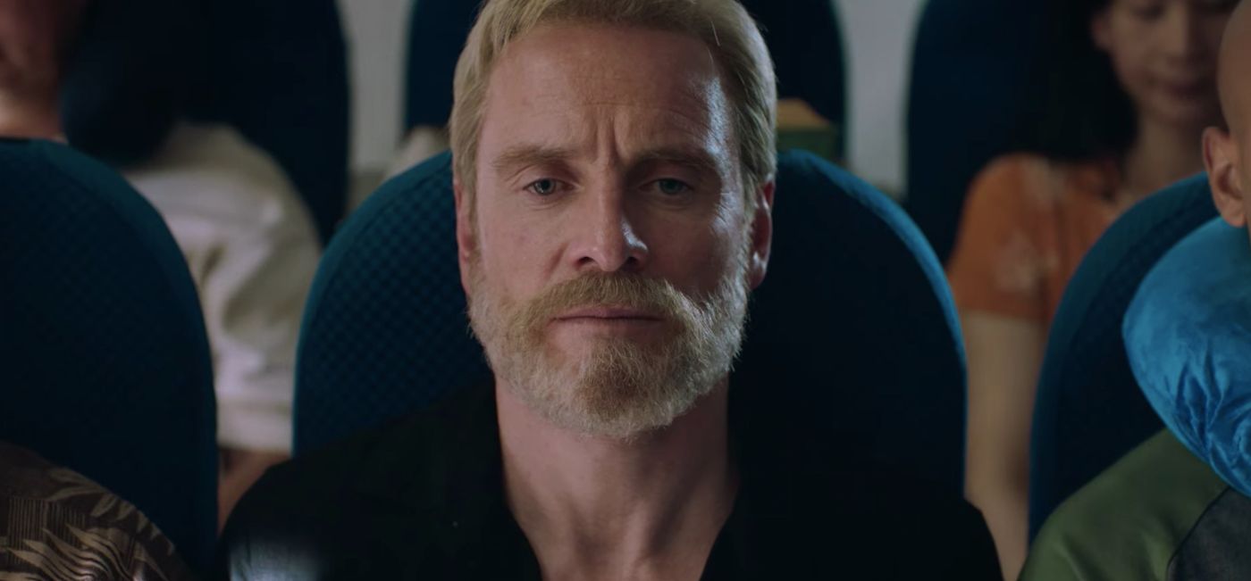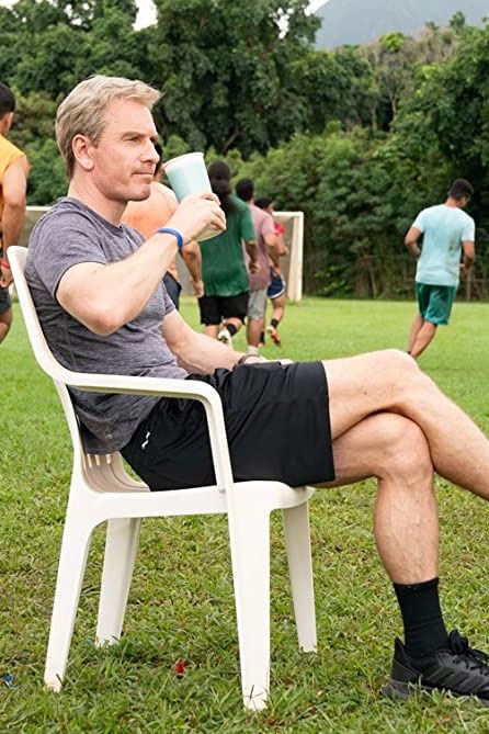 Michael Fassbender as Thomas Rongen yelling and surrounded by team in Next Goal Wins
