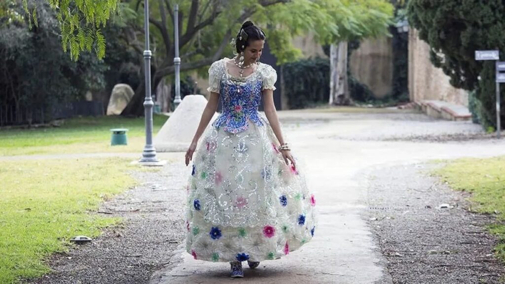El traje de fallera hecho con botellas de plástico y cápsulas de café que ha salido en National Geographic