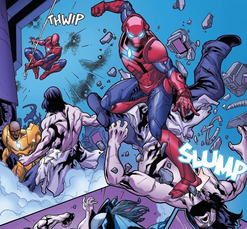 Después de la muerte de Wolverine, sus antiguos compañeros de equipo de los Nuevos Vengadores salen a buscar su cuerpo. En la película de 2018 La caza de Wolverine: la agenda de Adamantium #3-4 por Tom Taylor y RB Silva, los héroes de Marvel necesitan más potencia de fuego, y Tony Stark está dispuesto a complacerlos con algo de tecnología propia. Con un traje que le permite volar, mejora su fuerza y ​​le otorga ataques de explosiones de energía, Spider-Man prácticamente se convierte en Iron Man 2.0Con sus aliados Jessica Jones y Luke Cage también obteniendo armaduras de alta tecnología, la nueva mejora de Spider-Man hace que su traje de Iron Spider parezca barato.