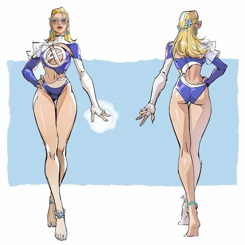 Rediseñando el atuendo de Sue Storm en una elegante piel de traje de baño y posiblemente arreglando lo que hizo que el notorio disfraz sea tan escandaloso para empezar.