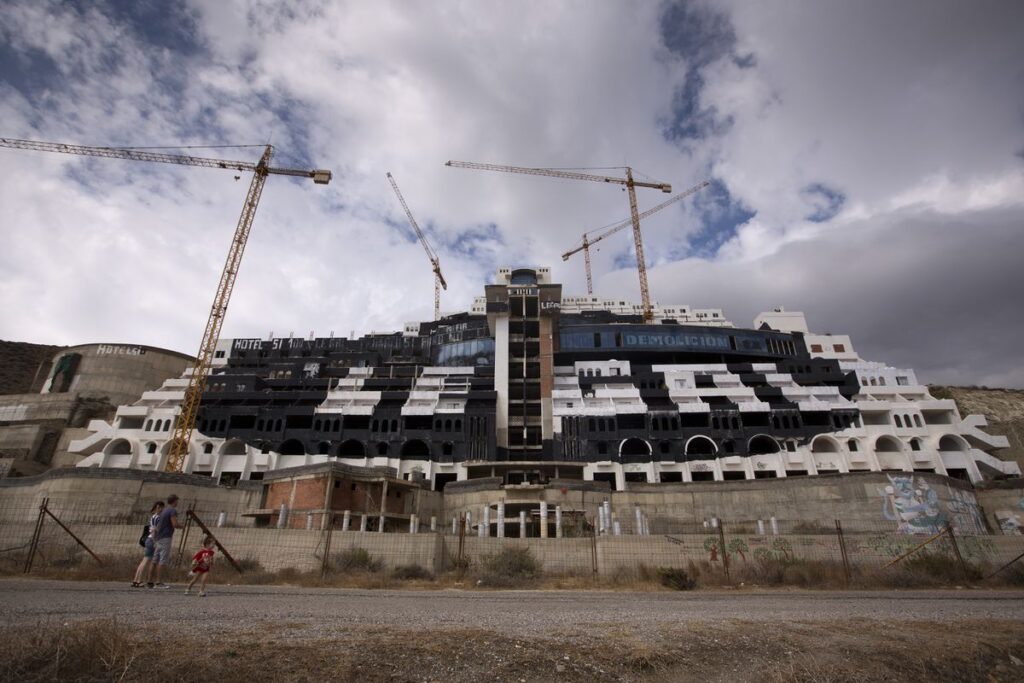 Pese al revés recibido ahora desde el TSJA, este hotel levantado a principios de siglo en la costa almeriense está condenado a su desaparición tarde o temprano. Además, cada vez parece más complicado que la constructora pueda ser indemnizada por las Administraciones. La Audiencia Nacional ya ha dejado claro que la promotora no tiene derecho a recibir los más de 70 millones que pedía al Gobierno central, la Junta de Andalucía y el Ayuntamiento. El edificio, cuya construcción de paralizó en 2006 cuando estaba al 94% de su ejecución, además de estar en una zona protegida de un parque natural se levantó a unos 50 metros del mar e invade la franja de protección de 100 metros fijada en la Ley de Costas, algo respaldado también por los tribunales.