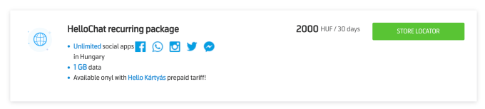 En otro ejemplo de Hungría, uno de los transportistas Telenor Las tarifas de datos de 1GB (capturadas a continuación) promocionan el consumo ilimitado de datos domésticos para varias aplicaciones sociales, incluidas Facebook, WhatsApp, Messenger, Instagram y Twitter, lo que significa que todas las demás aplicaciones / servicios están en desventaja ya que el uso se ve limitado por la asignación de 1GB del usuario.