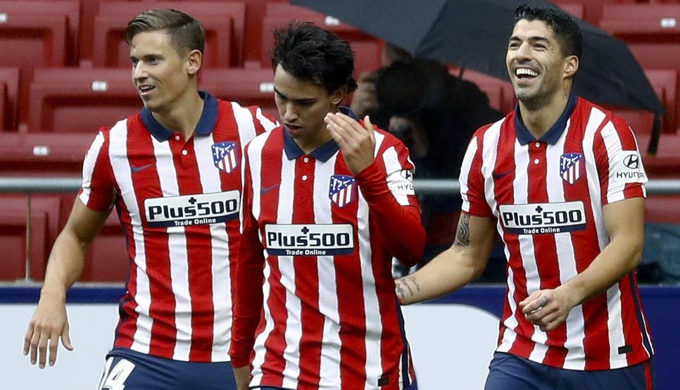 De los 39 goles que ha conseguido el Atlético, 24 han sido obra de Luis Suárez, Joao Félix y Marcos Llorente. Nueve goles ha logrado el uruguayo, todos en Liga, donde lidera la clasificación del Pichichi junto a Iago Aspas y Gerard Moreno, ocho el portugués y siete el madrileño, que está batiendo todos los registros.