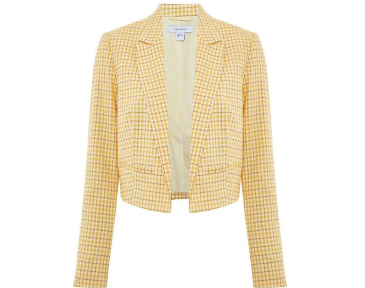 En su web está la chaqueta a cuadros, una americana corta amarilla que queda estupendamente con el pantalón a juego debajo, pero que pues combinar con aquello que quieras. Se nos ocurren algunas propuestas: con jeans, con un top negro o blanco, con un pantalón de pinzas en amarillo, o bien en beige y tierra.