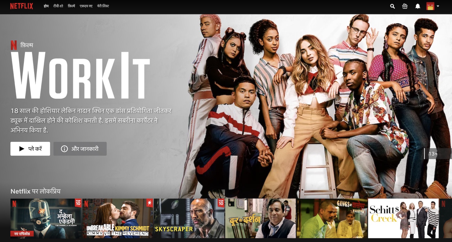 El enfoque en hindi ilustra el nivel de tracción que Netflix cree que ha recibido en India. La mayoría de las empresas internacionales tienden a localizar sus servicios en India después de haber aprovechado completamente la población en ciudades urbanas de todo el país donde el inglés es un idioma común.
