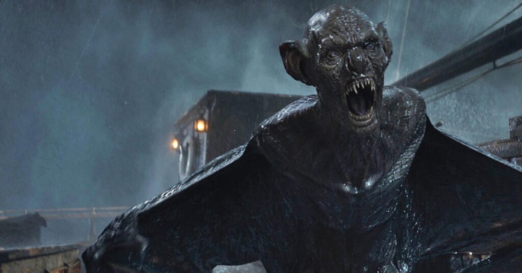 “Comenzamos en un extremo, y se dividió en la criatura murciélago y lo que llamamos… ‘Hombre Nosferatu’… Y la criatura murciélago se desarrolló mientras estábamos diseñando [the man] así que lo hicimos más parecido a un animal”, explicó Lundström. “Pero me esforcé mucho para no terminar en el Drácula de Bram Stoker diseños de películas… Porque en cuanto empiezas a mirar murciélagos y se los pones a un ser humano, vas encontrando cosas, elementos, se parecen mucho… Además, teníamos a Javier Botet: su físico es muy chulo , así que lo teníamos también. Solo se presta a ciertas proporciones, así que eso también ayudó”.