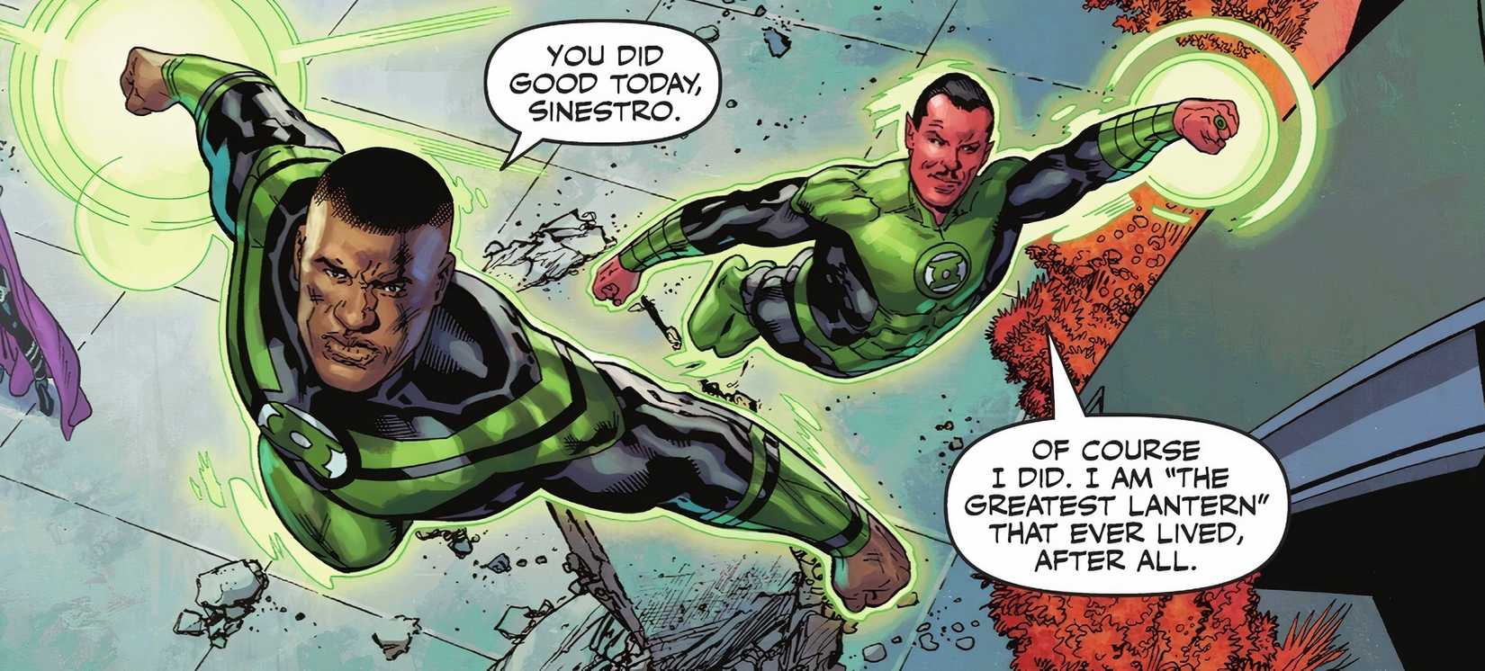 Ver a Sinestro de regreso como miembro del Cuerpo de Lintería Verde es un poco inesperado, pero no es la primera vez que sucede. Recuerdo los primeros días de los nuevos 52 cuando Sinestro se unió al cuerpo después de que Hal fue expulsado. Pensé que era una idea interesante entonces, y sigo pensando que hoy es una idea interesante. Pero mientras El tiempo de Sinestro con un anillo de potencia de linterna verde no funcionó la última vez, creo que Sinestro tiene muchas más posibilidades de que funcione ahora.