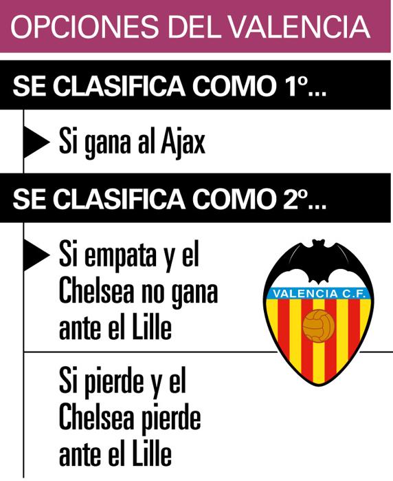 Para los de Mestalla todo lo que no sea ganar, le pondrá en manos de un Chelsea que no depende de sí mismo pero que, a cambio, se enfrenta a un Lille ya eliminado y que no tiene opciones ya ni de llegar a la Europa