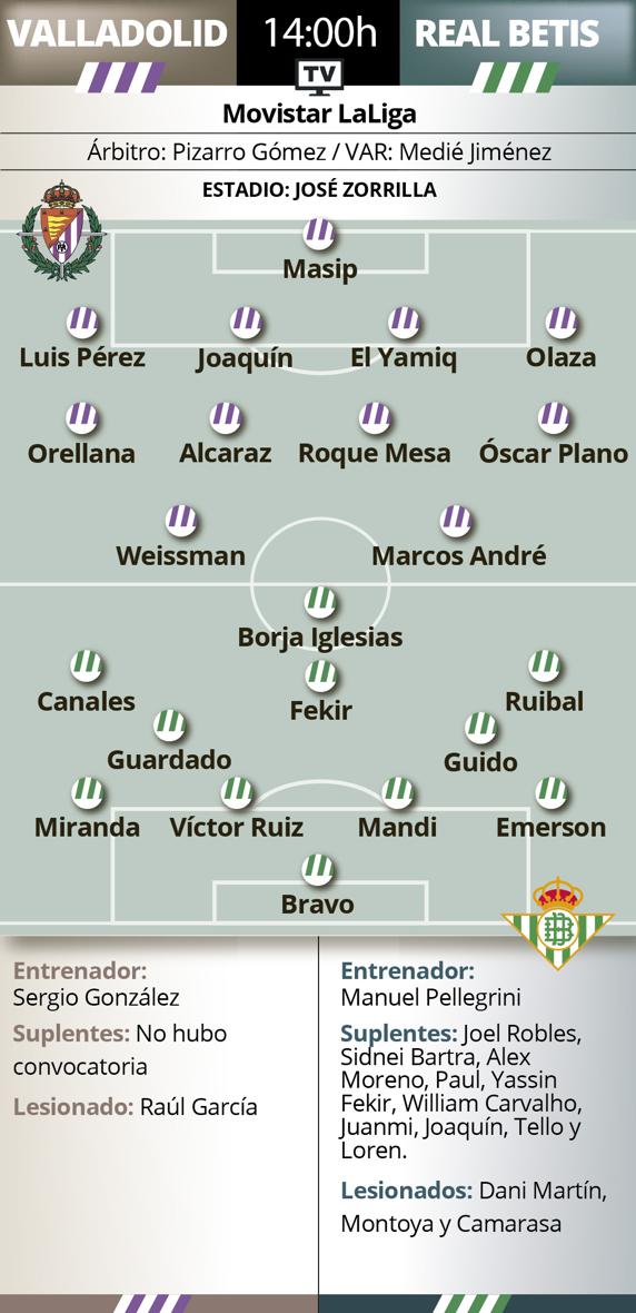 Los verdiblancos solo llevan perdidos 2 partidos de 21 en lo que va de año, pero tanto empate seguido les puede acabar lastrando en esta recta final, por lo que necesitan ya reencontrarse con una victoria que no celebran desde que ganaron al Levante (2-0) el pasado 4 de abril, hace ya casi un mes. Ganar se le está dando bastante mal últimamente al Valladolid, que solo ha sumado un triunfo en los 16 últimos partidos (9 empates y 6 derrotas) y también ha empatado los tres últimos, ante Athletic, Cádiz y Elche.