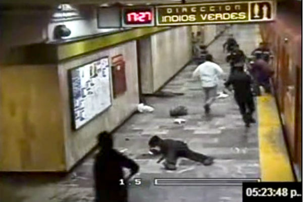 Este suceso, que fue registrado por cámaras de seguridad del Sistema de Transporte Colectivo, ocurrió luego de que Hernández Castillo ingresó a dicha estación para pintarrajear una de las paredes de la estación.