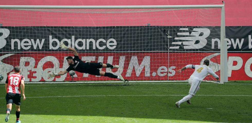 Sea como fuere, el penalti lo transformó Sergio Ramos en el minuto 73 para adelantar al Real Madrid ante el Athletic en un duelo que hasta entonces era muy disputado, quizás con los de Zidane mandando un poco más en la segunda mitad. La primera fue muy igualada, con los dos equipos mandando por fases en esos 45 minutos. Los de Zidane tuvieron tres ocasiones más o menos claras, mientras el Athletic tuvo un par. Entre Unai Simón y Courtois y la falta de acierto de los delanteros provocaron que no hubiesen goles en un encuentro disputado y al que le faltó el ambiente en las gradas de estos duelos en San Mamés.