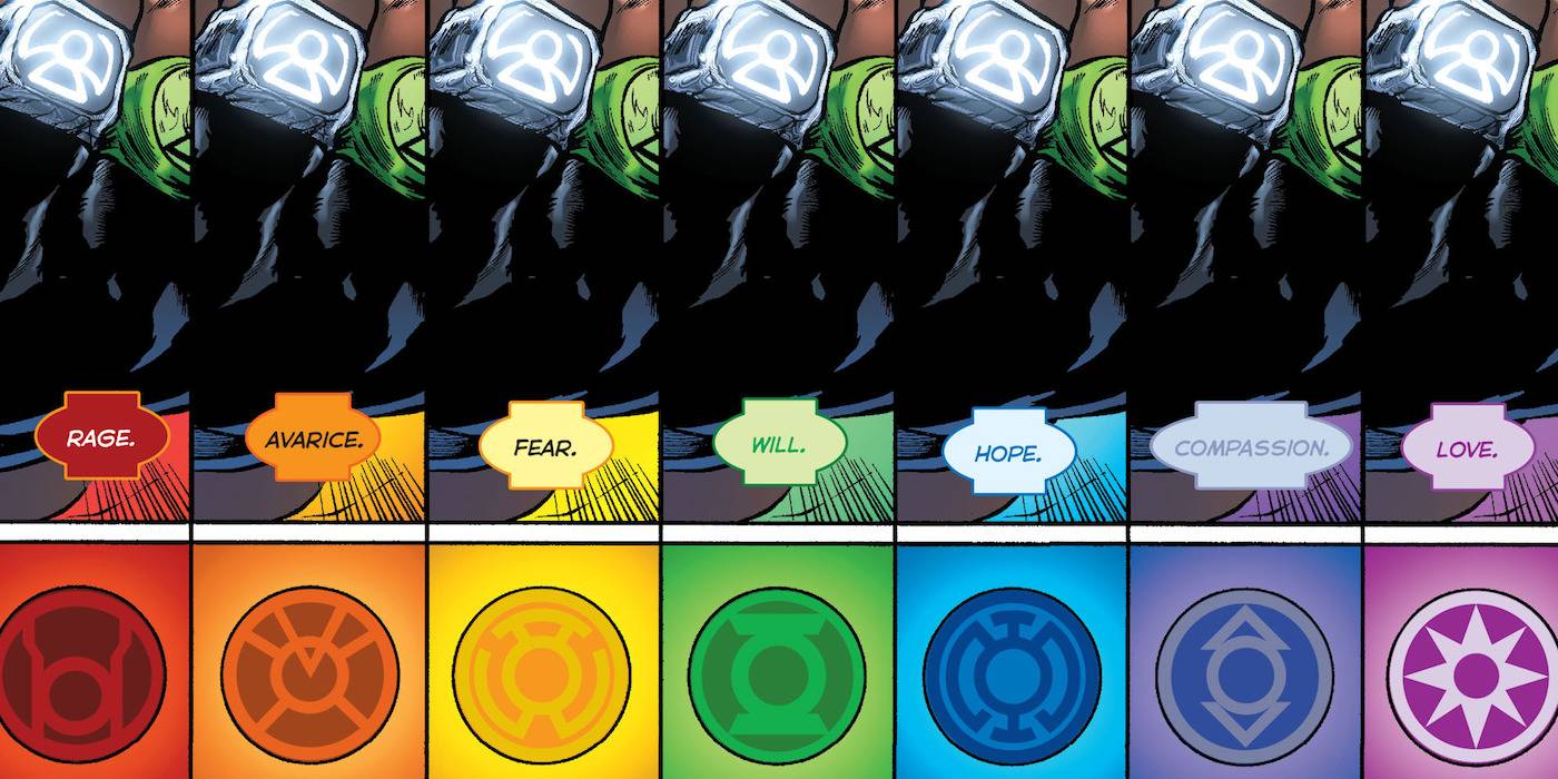 #5. - El espectro emocional, con el rojo en un extremo y el violeta en el otro, juega un papel importante a la hora de determinar los poderes y personalidades de los Lanterns.