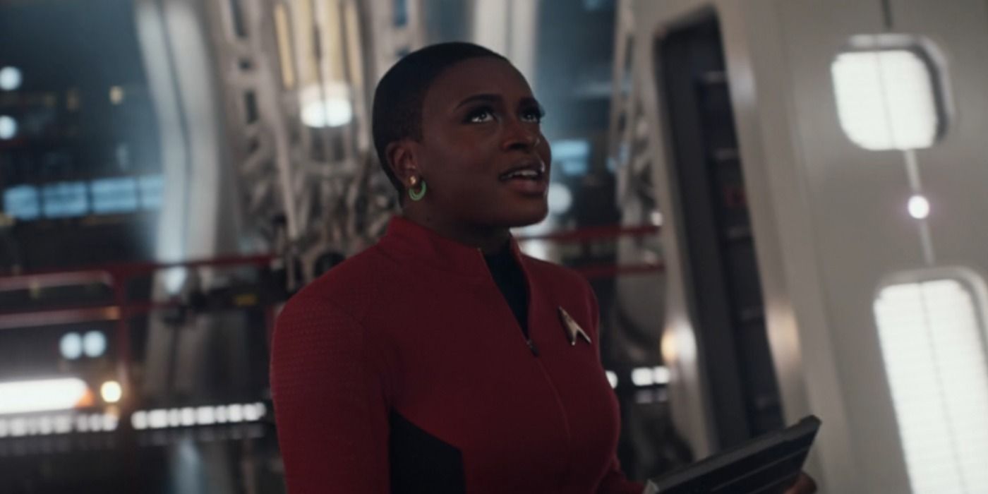 En Nuevos mundos extraños temporada 2, la alférez Uhura se unió oficialmente al equipo de Enterprise como oficial de comunicaciones. Debido a su habilidad para los idiomas y su disposición a escuchar, Uhura se ha convertido en una especie de punto de contacto para especies alienígenas en más de una ocasión. Ella encarna los ideales de la Flota Estelar, siempre respondiendo a lo desconocido con curiosidad y asombro. La escena inicial en Nuevos mundos extraños El episodio musical ilustra cuán invaluable se ha vuelto Uhura, ya que rápidamente dirige múltiples llamadas hacia y desde el equipo. Uhura realmente brilla a lo largo de “Subspace Rhapsody”, y el episodio muestra lo lejos que ha llegado de ese cadete que consideró dejar la Flota Estelar.