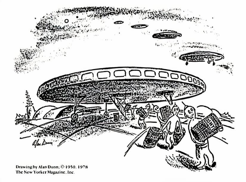 “¿Donde está todo el mundo?” Se dice que Fermi preguntó a un grupo de colegas, planteando la paradoja que llevaría su nombre. Un detalle menos conocido de esta historia es que La pregunta surgió por primera vez de una caricatura en El Revista neoyorquinadel artista Alan Dunn. En 1950, la idea del “platillo volante” estaba en proceso de arraigarse firmemente en la conciencia popular. La caricatura de Dunn mostraba un platillo aterrizando en un planeta, del cual salía una fila de extraterrestres que llevaban botes de basura, presumiblemente robados de la Tierra.
