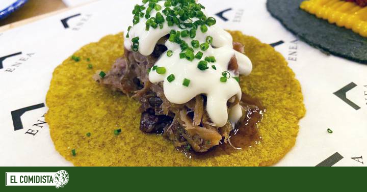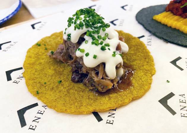 Igor Aguirre, ex campeón de España de jóvenes cocineros en 2002, prepara el talo a partir de maíz de txakinarto (a veces sorprende con uno morado) en este local bilbaíno que es toda una oda al cerdo. Lo rellena de carrillera ibérica, cebolla encurtida y mahonesa de chipotle, un detalle que lo acerca a Latinoamérica directamente desde el centro del mundo.