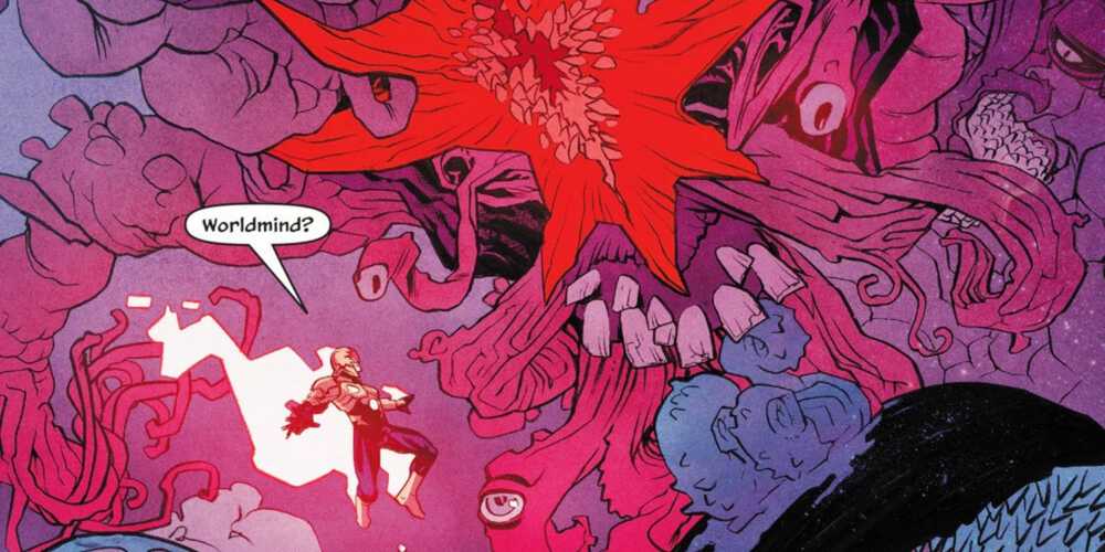 En Estrella nueva #7 Por Jeff Loveness, Ramon Pérez y Scott Hepburn, Rich Rider y Sam Alexander lograron atrapar al corrupción mundial de regreso a Cancerverse, pero ahora la monstruosa criatura ha regresado. Cuando Rider reactivó a WorldMind, de alguna manera desenterró esta versión distorsionada de la mente mundial, con sus tentáculos inductores de pesadilla, dientes afilados y forma grotesca mutada en exhibición completa.