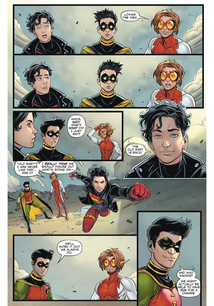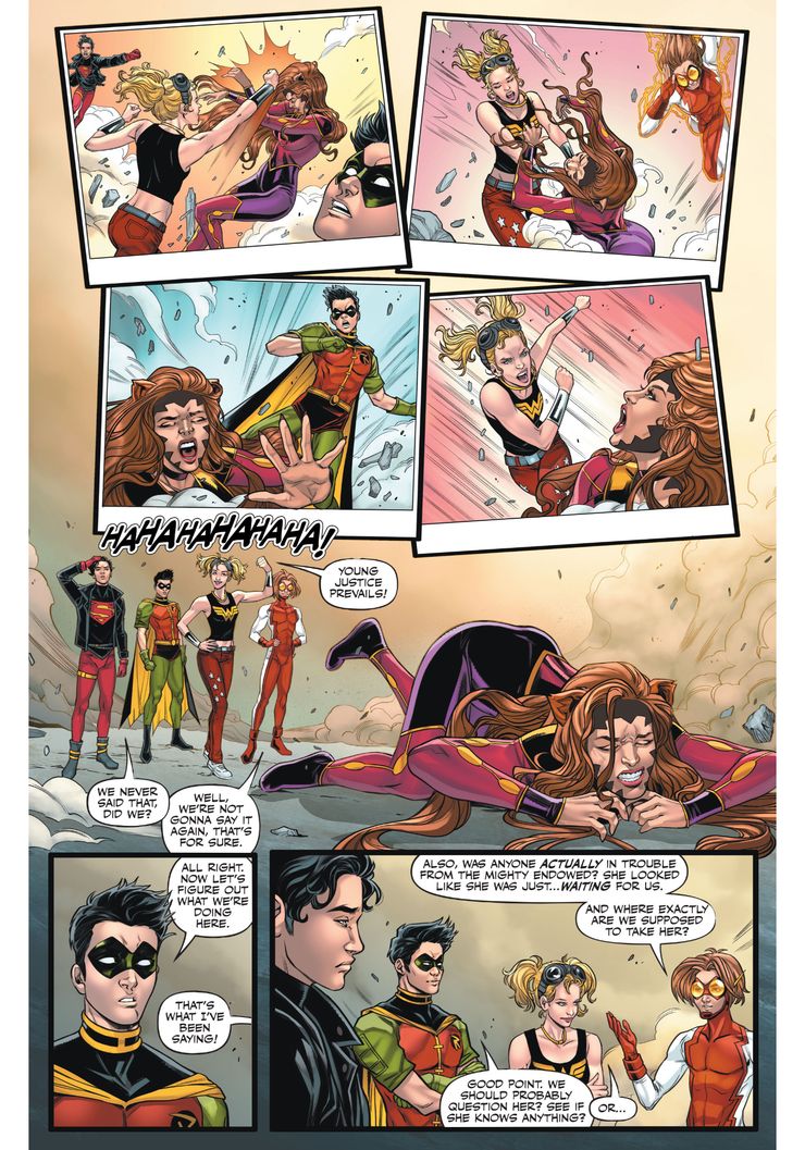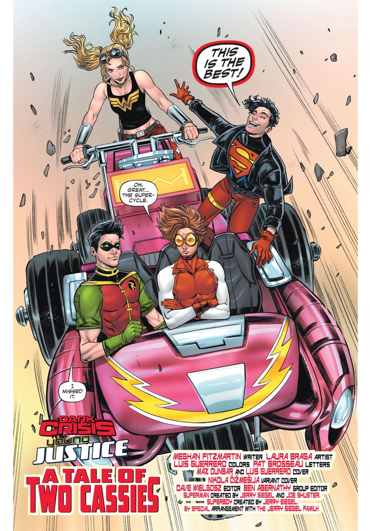 En una nueva vista previa de In Crisis Oscura: Justicia Joven #2, de Meghan Fitzmartin, Laura Braga, Luis Guerrero y Pat Brosseau de DC Comics, Impulse, Superboy y Robin se encuentran en una realidad alternativa familiar donde se revive el encuentro del equipo original de Young Justice con Mighty Endowed. Cassie Sandmark lucha contra el villano inapropiado, mientras Impulse señala que disfruta de la vista. Después de derrotar al villano, los jóvenes héroes saltan a su superciclo, donde las cosas solo se vuelven más extrañas.
