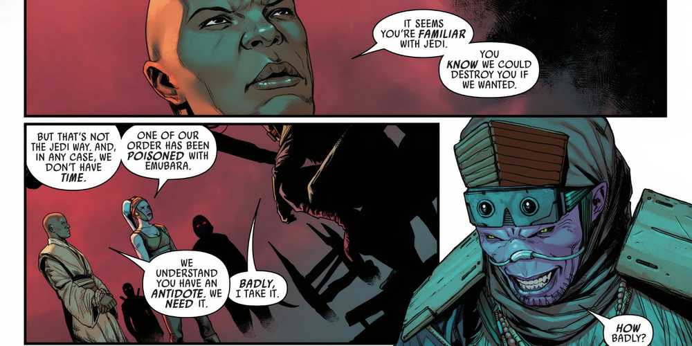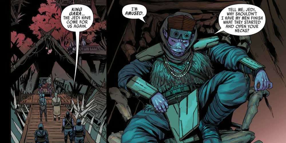 Este problema puede ser la primera vez que los fanáticos ven a King Gara y los desterrados, pero ciertamente no será el último. De hecho, la razón por la que los Jedi necesitaban ir a Sinsara en primer lugar es que un pícaro desterrado Ninja envenenó a Qui-Gon Jinn, y que Ninja aún no ha sido atrapado.