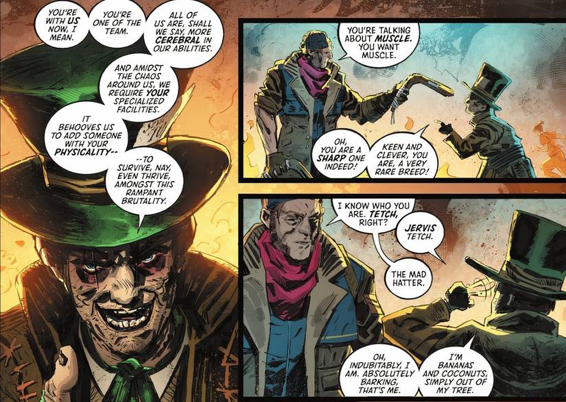 En un esfuerzo por sobrevivir a los disturbios, Mad Hatter y sus compañeros con inclinaciones cerebrales recurren a las habilidades de combate de Boomerang para ayudarlos a salir vivos de los disturbios a cambio de dinero. Sin embargo, Tetch y Harkness pronto se enfrentan entre sí, gracias a la intromisión de Waller.