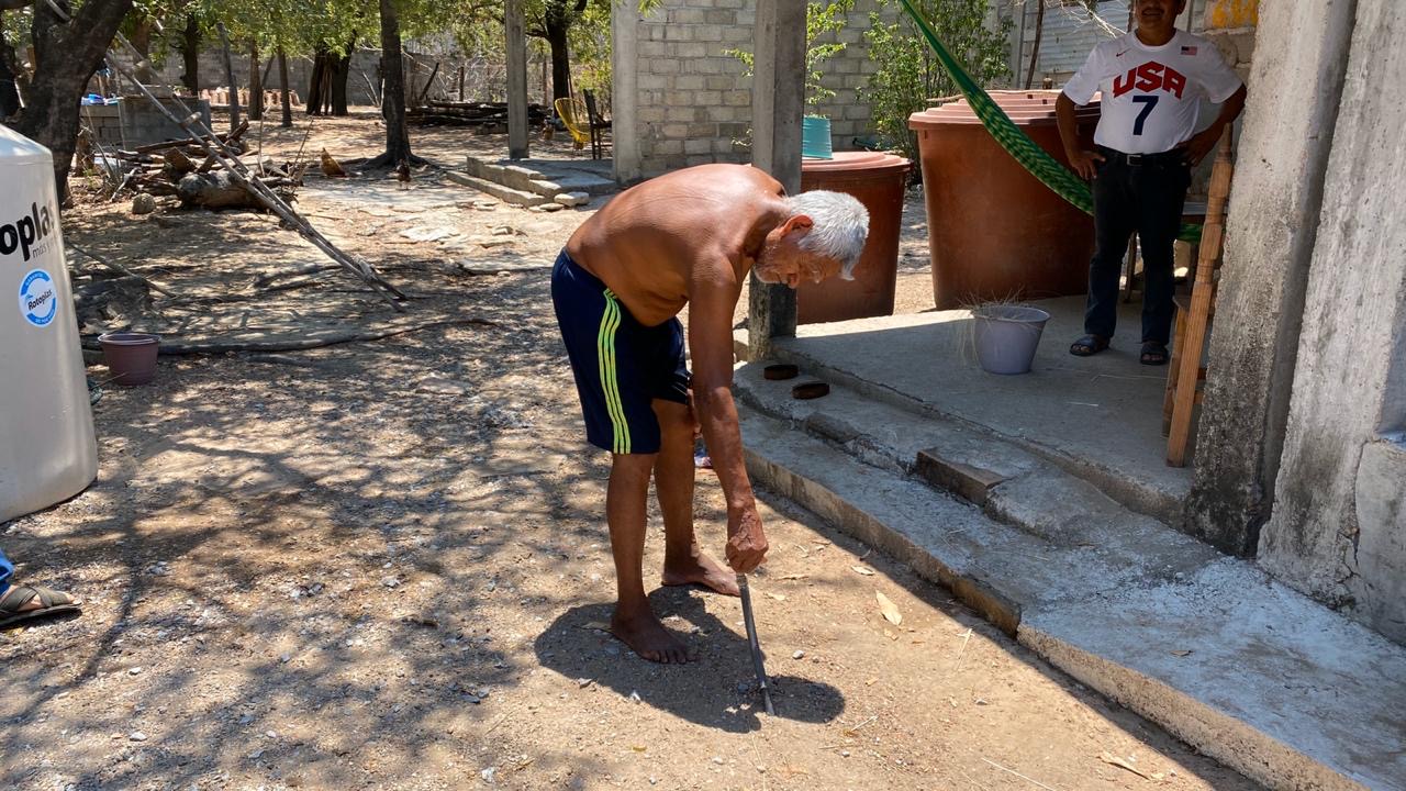 Indígena ikoots de San Dionisio del Mar, que busca agua de su tubería, pero no cae desde hace 20 años. Ellos compran el agua o la extraen de pozos.