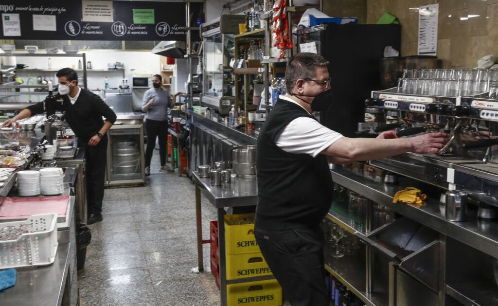 Camareros trabajan en un bar de Sevilla.Alejandro Ruesga (EL PAÍS)
