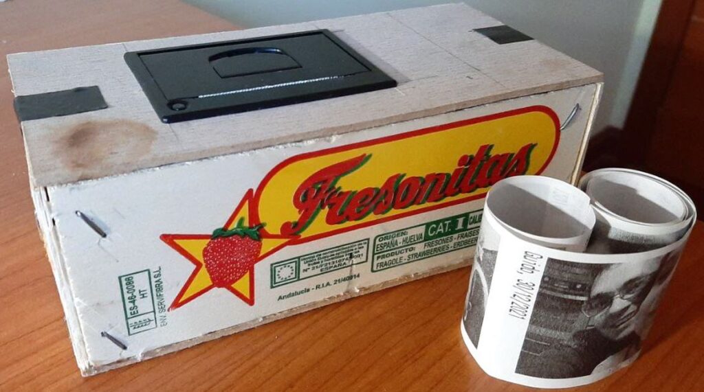 El dispositivo imprime en blanco y negro. La Raspberry Pi “es más potente de lo que parece”, cuenta García. “Tiene medio giga de memoria RAM. Un ordenador de sobremesa igual llega a los cuatro gigas, así que tiene unas capacidades limitadas, pero para hacer este tipo de aplicaciones o para domótica se utilizan mucho porque tiene un consumo muy bajo, no hace ruido, no se calienta…’’, explica. La tarjeta SIM sirve para obtener la conexión a internet y, por lo tanto, con el bot. Puesto que la abuela no tiene wifi ni teléfono móvil, esta era la forma más sencilla de conseguirlo. Cuando alguien le envíe una foto o un mensaje lo recibirá en papel sin tener que hacer nada más que recogerlo de la impresora. Todos los componentes los contiene una caja de fresas, que es la que tenía por casa. El proyecto está concluido, falta solo que se lo lleve a su abuela para que pueda estrenarlo.