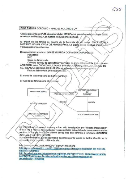 La sindicalista, conocida como La Maestra, preveía justificar la transferencia del dinero desde México a la firma holandesa como un supuesto pago a la exportación. Y, para convencer a la entidad andorrana de la legalidad de los fondos, entregó a la BPA una copia de su pasaporte, del testamento de su madre y documentos mercantiles de las compañías por donde circularía su capital antes de aterrizar en el pequeño país europeo.