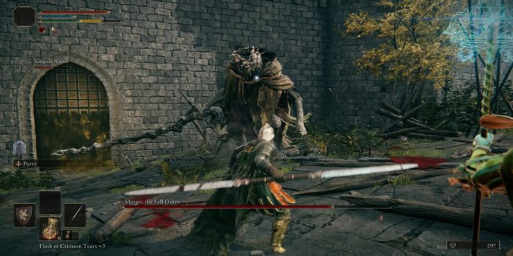 Desde Gatehouse Site of Grace, dirígete hacia el sur brevemente y explora un conjunto de ruinas custodiadas por un escuadrón de soldados. En lugar de enfrentarlos, los jugadores deben optar por agacharse y escabullirse entre ellos, apuñalando por la espalda a algunos de los enemigos en caso de que se presenten los momentos oportunos.