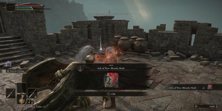 De espaldas a la enorme puerta que el jugador acaba de dejar atrás, busca en las ruinas del lado derecho de la carretera una escalera descendente. Esto conducirá a un cofre que contiene el Whetstone Knife, que permite a los jugadores equipar sus armas con Ashes of War.