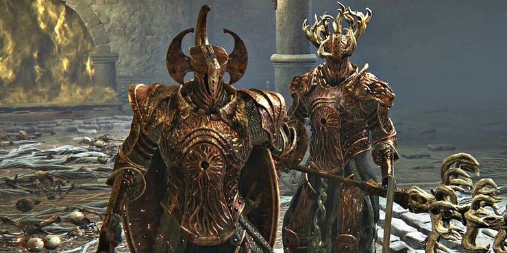 Los caballeros luchan de manera bastante agresiva, combinan sus movimientos y van a matar después de aturdir al jugador con una onda de choque. Abren sus alas en la segunda fase y cargan contra el jugador constantemente. Dado lo agresivos que son los Caballeros del Crisol, contrarrestarlos jugando pasivo es la apuesta más segura que existe, y una vez más, una invocación de cenizas espirituales es casi obligatoria para igualar las probabilidades.