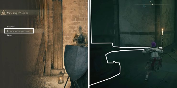 El primer método es hablar con Anillo de Elden PNJ, Guardián Gostoc. Se le puede encontrar en la habitación a la izquierda de Stormveil Castle Gate. Gostoc aconsejará a los Empañados que tomen la ruta secreta a través de una abertura en los muros occidentales. Si el jugador se adhiere a su guía, le desea buena suerte a los Deslustrados, permitiéndoles seguir su camino. Por otro lado, Anillo de Elden los fanáticos pueden rechazar el enfoque secreto y exigirle a Gostoc que abra la puerta principal de Stormveil. Esta acción se puede realizar eligiendo la opción de diálogo “Quiero usar la puerta principal”. Sin embargo, los jugadores deben estar preparados para recibir una lluvia de flechas de ballesta al entrar por la puerta del castillo. Por lo tanto, se recomienda utilizar el cercano Sitio de Gracia antes de aventurarse por la traicionera entrada principal.