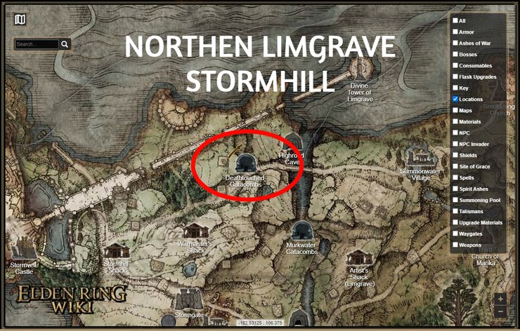 Deathtouch Catacombs será una cueva al costado de un acantilado. Habrá un Spirit Man descansando frente a la puerta. Los jugadores pueden usar el Spirit Man para ayudar a localizar la entrada a las Catacumbas Tocadas por la Muerte. Una vez dentro, el Uchigatana estará ubicado en el segundo piso de las Catacumbas.