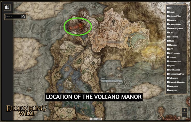 Donde los jugadores pueden encontrar a Tanith de Volcano Manor y completar su Questline, que recompensa la Serpentbone Blade Katana en Elden Ring