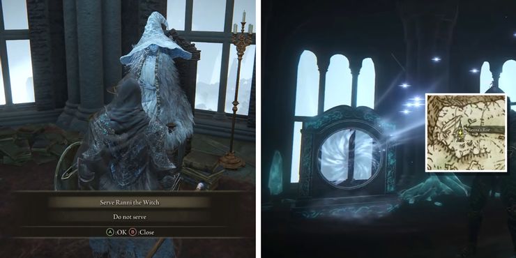 Ranni’s Rise se encuentra al oeste de Three Sisters y está custodiado por Glintstone Dragon Adula. Ten en cuenta que los aventureros no tienen que luchar contra el dragón para encontrarse con la Bruja. Asciende a la torre y ofrece servidumbre a Ranni, después de lo cual le encargará al protagonista que encuentre el tesoro escondido de Nokron, Fingerslayer Blade. Luego, una barrera mágica rodeará Ranni’s Rise y solo desaparecerá una vez que el jugador haya hablado con el consejero de guerra Iji, Blaidd y Seluvis. Si Blaidd no está presente, el protagonista puede hablar con Iji y Seluvis. Regrese con Ranni para completar la cadena de diálogo y disipar la barrera exterior.