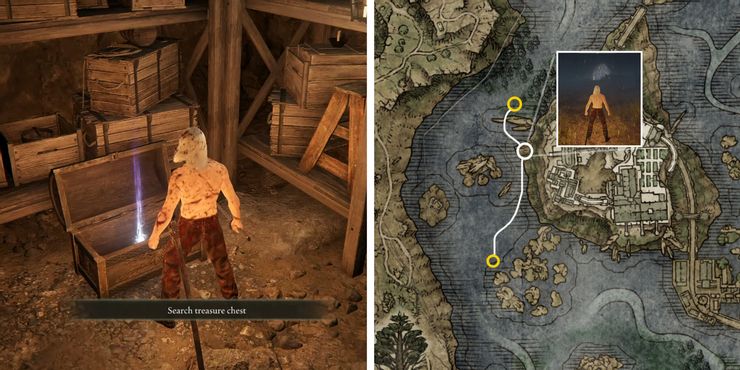 Comenzando desde el Sitio de Gracia en la Cueva de Cristal de la Academia, diríjase por el primer túnel hacia el área acuosa con cristales púrpuras que crecen desde el suelo. Tenga en cuenta que Raya Lucaria Sorcery se esconde detrás de un cristal y varios otros que acechan cerca en la oscuridad. Dirígete al punto de entrada del segundo túnel a la vuelta de la esquina del lado derecho. Abra la puerta para entrar en la última cámara que precede a la sala del jefe. Golpea la pared a la izquierda de la entrada para disipar una pared ilusoria, revelando un camino a un área de almacenamiento oculta. Saquea el cofre en el nivel superior al final para obtener el Crystal Staff en Anillo de Elden.