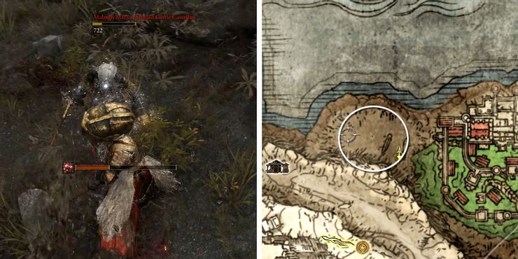 Una vez Anillo de Elden los jugadores llegan al sitio, se encontrarán con el hostil Shaded Castle Castellan y su mascota Golem. Tenga en cuenta que Maleigh también estará equipado con su estoque que inflige podredumbre, así que tenga cuidado de no ser golpeado demasiadas veces. Además, se recomienda que Tarnished aleje a Maleigh Marais del Golem para convertir la situación en una pelea de 1 contra 1. Una vez derrotado, el Castellano dejará caer el House Marais Set y Antspur Rapier en Anillo de Elden.