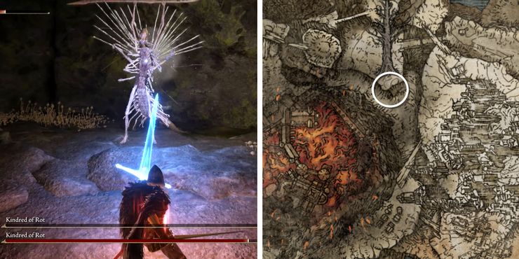 Los Kindred of Rot son enemigos ágiles que infligen un alto DPS, lo que los convierte en un tipo de enemigo molesto para luchar. Para completar Seethewater Cave, Tarnished debe enfrentarse a dos de estas bestias ciempiés para obtener la recompensa Talismán. La mejor estrategia sería invocar Spirit Ashes al comienzo de la batalla para distraer a uno mientras el jugador puede lidiar con el otro. Sin embargo, tenga en cuenta que tan pronto como los aventureros entren por la puerta de niebla, uno o ambos Rot Kindred lanzarán Pest Threads al protagonista. Para aprovechar sus debilidades, Anillo de Elden Se recomienda a los fanáticos que usen armamentos o habilidades que inflijan daños por Congelación o Hemorragia. Una vez que el dúo de Kindred of Rot haya sido derrotado, los jugadores recibirán el talismán de exultación de Kindred of Rot,