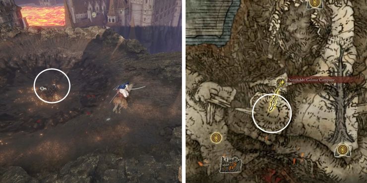 El Sitio de Gracia más cercano al jefe es el Campamento del Noveno Monte Gelmir. Para llegar a esta Gracia, los peregrinos Empañados deben ascender la montaña a partir del sendero en el río Seethewater. Después de cruzar el barranco hasta Fort Laied, diríjase hacia el sur pasando el estanque del Magma Wyrm y luego hacia el noreste a través de Anillo de EldenEl pueblo de los ermitaños. Los viajeros sabrán que están en el camino correcto una vez que hayan encontrado o visto al Mercader Nómada a lo largo del viaje. Una vez que han llegado al Noveno Campamento, pueden subir la escalera colgante alta o montar el Spiritspring Jump hasta el jefe.