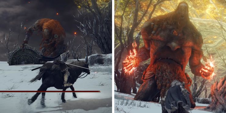 Aunque el Gigante de Fuego se mueve con bastante lentitud, Tarnished no debe dejarse engañar por la falta de velocidad de la bestia en Anillo de Elden. El jefe puede cerrar distancias rápidamente debido a su tamaño y habilidades de salto. Además, no se debe subestimar el alcance de cada uno de los ataques del gigante, ya que pueden diezmar a un retador en cualquier altura o rango cercano. Los aventureros también deben entrar en esta batalla de jefes con la mentalidad de luchar a pie. Montar encima de Torrent es una sentencia de muerte, ya que la falta de rodar restringe severamente la capacidad del jugador para acercarse al jefe lo suficientemente cerca como para atacar. Este concepto también se aplica a los luchadores a distancia, como los magos. La distancia que Hechiza recorre mucho para alcanzar al gigante es igual a la duración de los ataques de barrido y de golpe del gigante. En otras palabras, derrotar al Gigante de Fuego en Anillo de Elden requiere combate cuerpo a cuerpo.