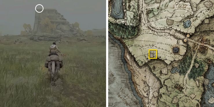 La ubicación de Crossed Legs está en West Limgrave, al sur de Stormhill Shack. El Gesto es fácil de perder aunque se puede encontrar a plena vista cerca del sendero Stormhill. La razón probable es que la estructura demolida sobre la que se asienta parece bastante genérica, lo que hace que Tarnished se olvide de mirar más de cerca. Afortunadamente, Crossed Legs no tiene un límite de tiempo ni está vinculado a ninguna línea de búsqueda de NPC, lo que significa que el jugador puede regresar a Stormhill cuando quiera retomar el Gesto.