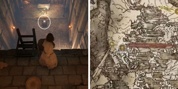 Comenzando desde el Sitio de Gracia en Gelmir Hero’s Grave, dirígete por el corredor de la izquierda para llegar al extenso camino de lava custodiado por Skeletons y un Death Chariot. A medida que Tarnished se acerque al final del camino transitable, encontrarán un pequeño abismo a lo largo del estrecho sendero donde la lava deja de fluir brevemente. Camina hacia la esquina del lado derecho y déjate caer al abismo de abajo.