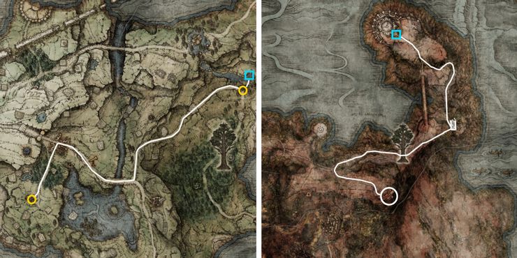 Partiendo de Bestial Sanctum, baja por el camino hacia Farum Greatbridge. Asegúrate de moverte rápido, ya que el Black Blade Kindred que protege la entrada del Sanctum se despertará si el jugador se acerca demasiado. Para evitar luchar contra el Dragón Greyll, gira a la izquierda antes de llegar al Gran Puente y baja por el sendero que lleva a Lenne’s Rise. Tenga en cuenta que el puente peatonal frente al Farum Greatbridge generará un Calvario de la noche después del anochecer. Dentro de los bosques a la izquierda de Lenne’s Rise, Tarnished puede encontrar un Spiritspring Jump que los enviará al cementerio de arriba, permitiéndoles pasar por alto a Greyll sin problemas.